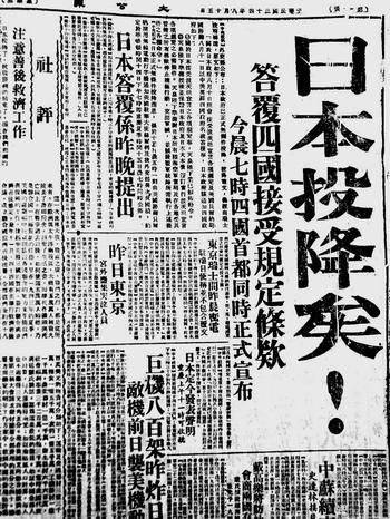 且於同年9月2日,在東京灣的美國戰艦“密蘇里”號上舉行投降儀式並正式簽署降書,正式結宣告第二次世界大戰結束。